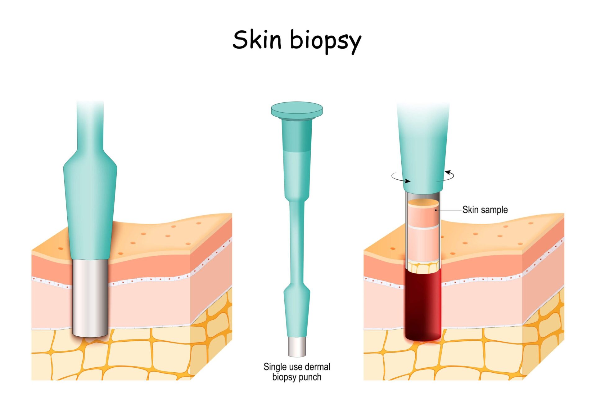A punch biopsy is a minor procedure. It involves removing a small cylinder of skin with a disposable round stainless-steel tool. Punch biopsies range between 2 – 8 mm.